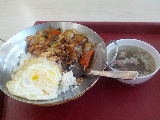 Ganze 7,90 RM für ein pepper chicken mit Reis aus dem Wok. Dazu das obligatorische Spiegelei (damit ja alle Teile vom Huhn drinnen sind). Weiters eine undefinierbare Suppe die sehr stark nach Zitronengras geschmeckt hat, aber mich nicht überzeugen konnte.
