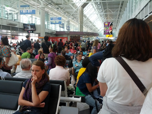 Seit in zwischen gut 35 Minuten warten wir darauf , dass die Überprüfung der Notbeleuchtung abgeschlossen ist und wir endlich das Flugzeug betreten dürfen.