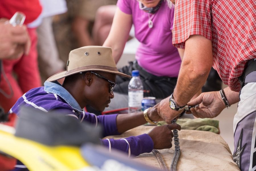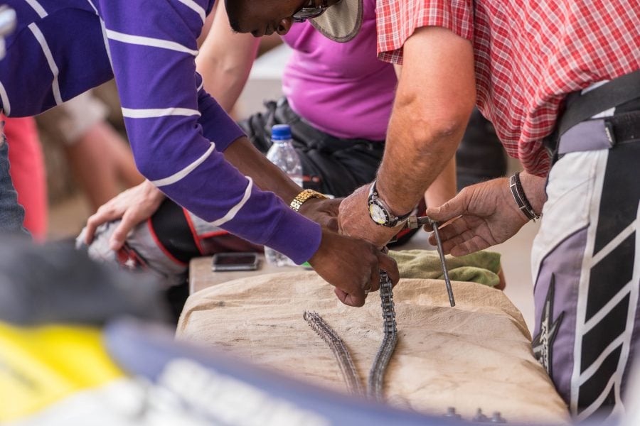 Auch Ketten können reißen und müssen dann vor Ort repariert werden….