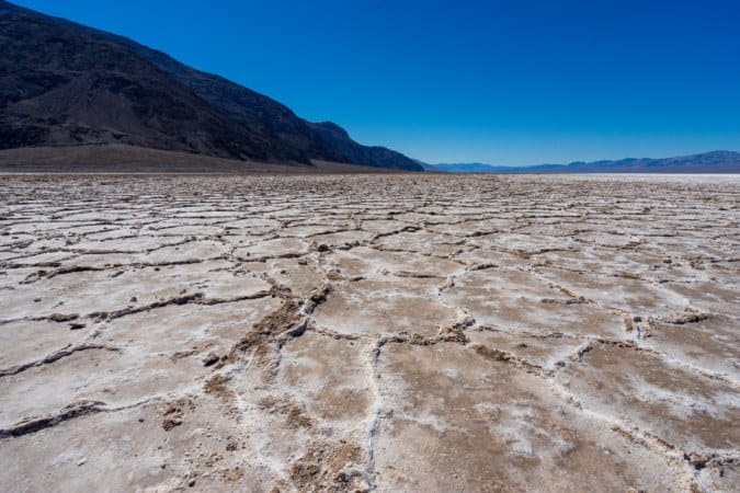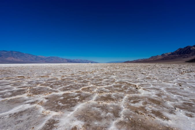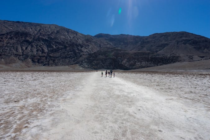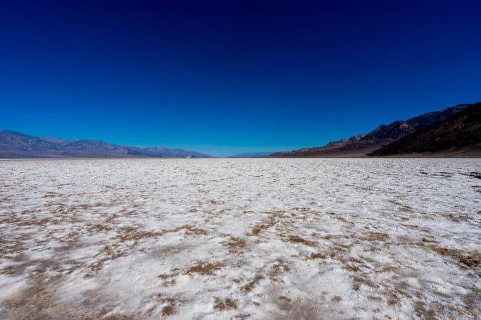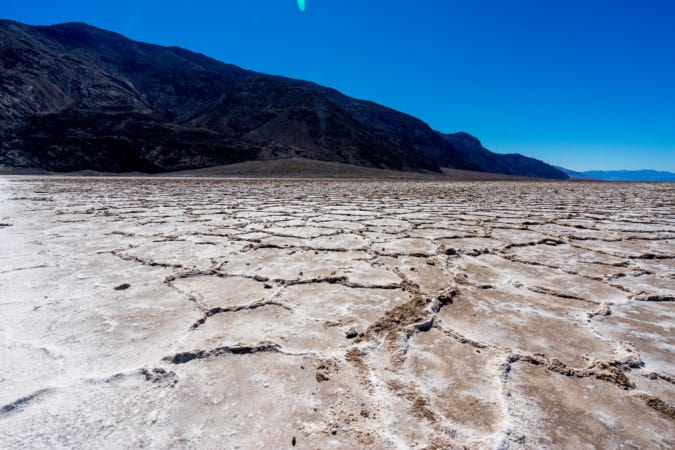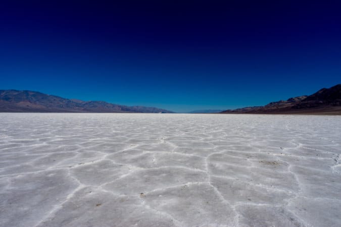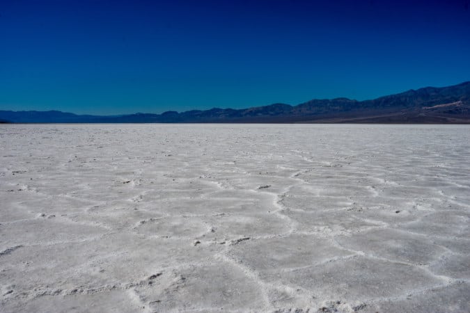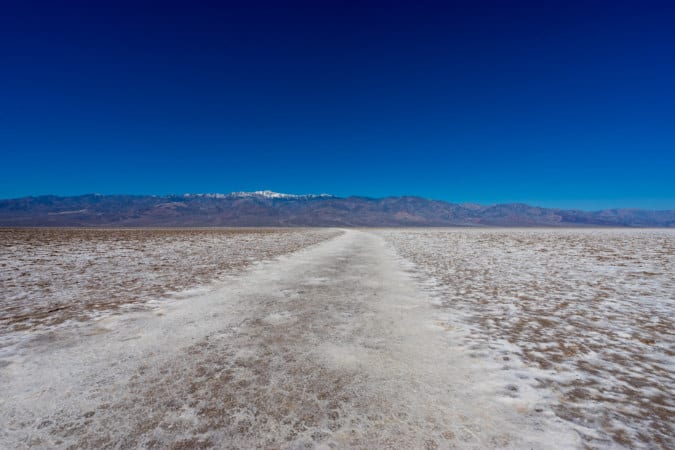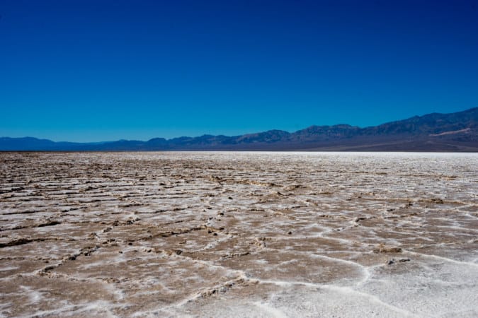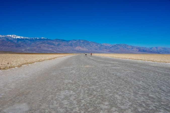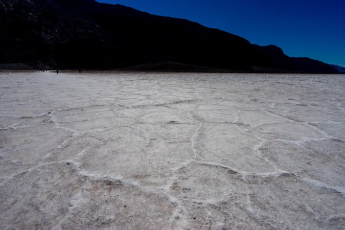 Beim Bad Water Basin, das 85,5 m unter dem Meeresspiegel liegt, habe ich dann zum ersten Mal die 100°F überschritten (zumindest laut Anzeige im Boardcomputer). Hier ist man am niedrigsten Punkt Nordamerikas und kann gleichzeitig den höchsten Punkt der USA (außerhalb Alaskas) sehen: Mount Whitney mit 4421 m
