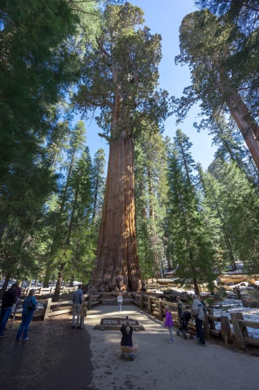 Der Park ist bekannt dafür, dass dort die ganz großen Redwood Bäume stehen. Unter anderen auch der berühmte General Sherman Tree. Um zu den berühmten Bäumen zu kommen ist es notwendig, dass ziemlich weit nach oben fährt. Wie man auf den Bildern sieht liegt dort noch ganz ordentlich Schnee und es gibt eine richtige Passstraße mit Kehren und allem drum und dran.